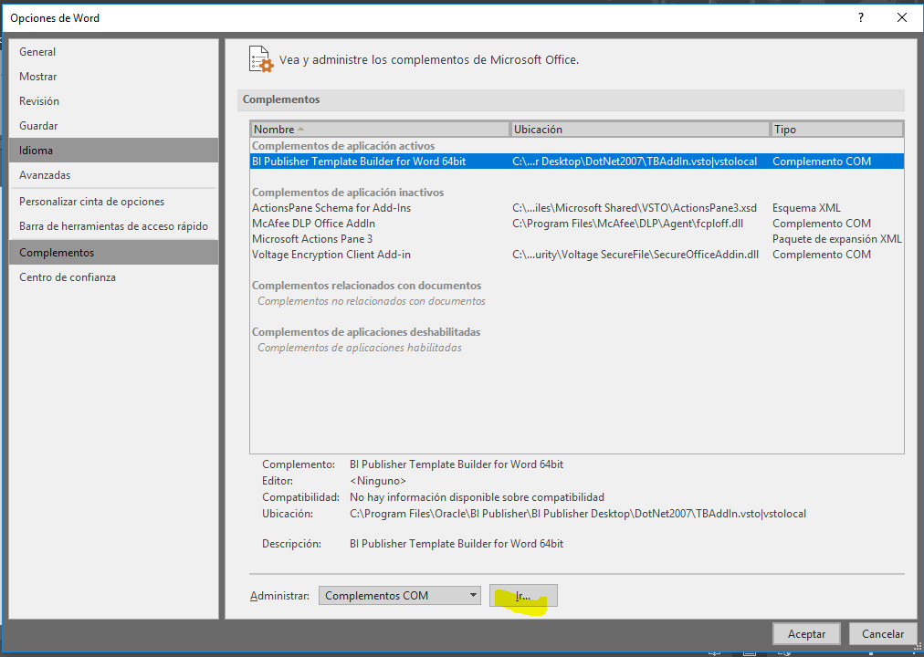 我正试图在我的系统上安装BI Publisher add on for Word。下面是我的系统的配置:
