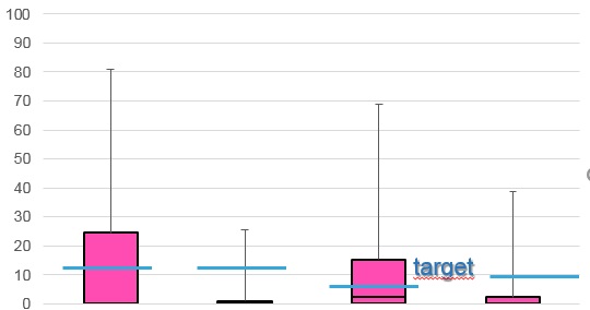这样做的目的是制作一个方格图,并在其上为每个人添加一个目标行。我制作了一个正在工作的盒图,但没有成功地添加目标行(列"Obj“包含目标值)。