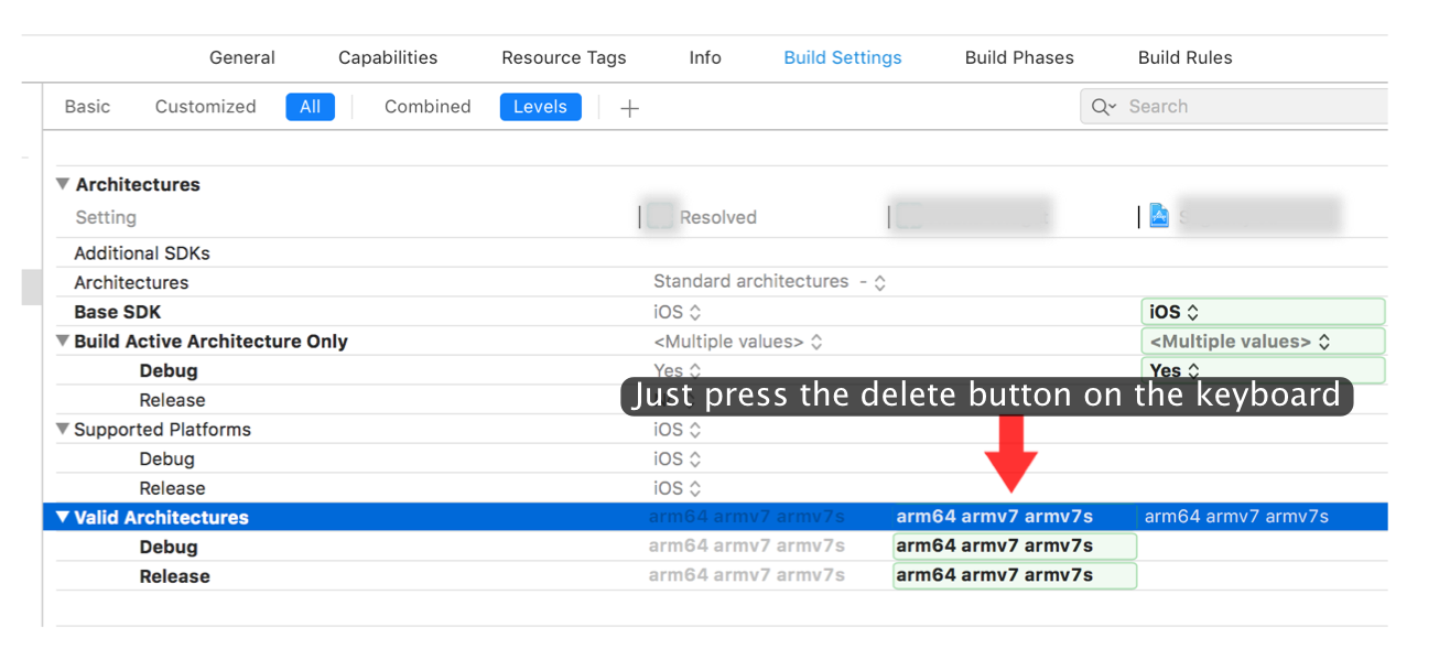 奇怪的是,它显示为armv7 arm64 (与armv7 armv7s arm64的默认设置相比),但手动将其设置为该值仍然会引发警告。不知道这有什么意义,但我还没有注意到我的测试中有任何问题。