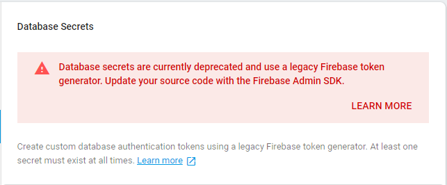 Google Firebase数据库机密现在被废弃了。因此,您需要继续使用Firebase Admin。