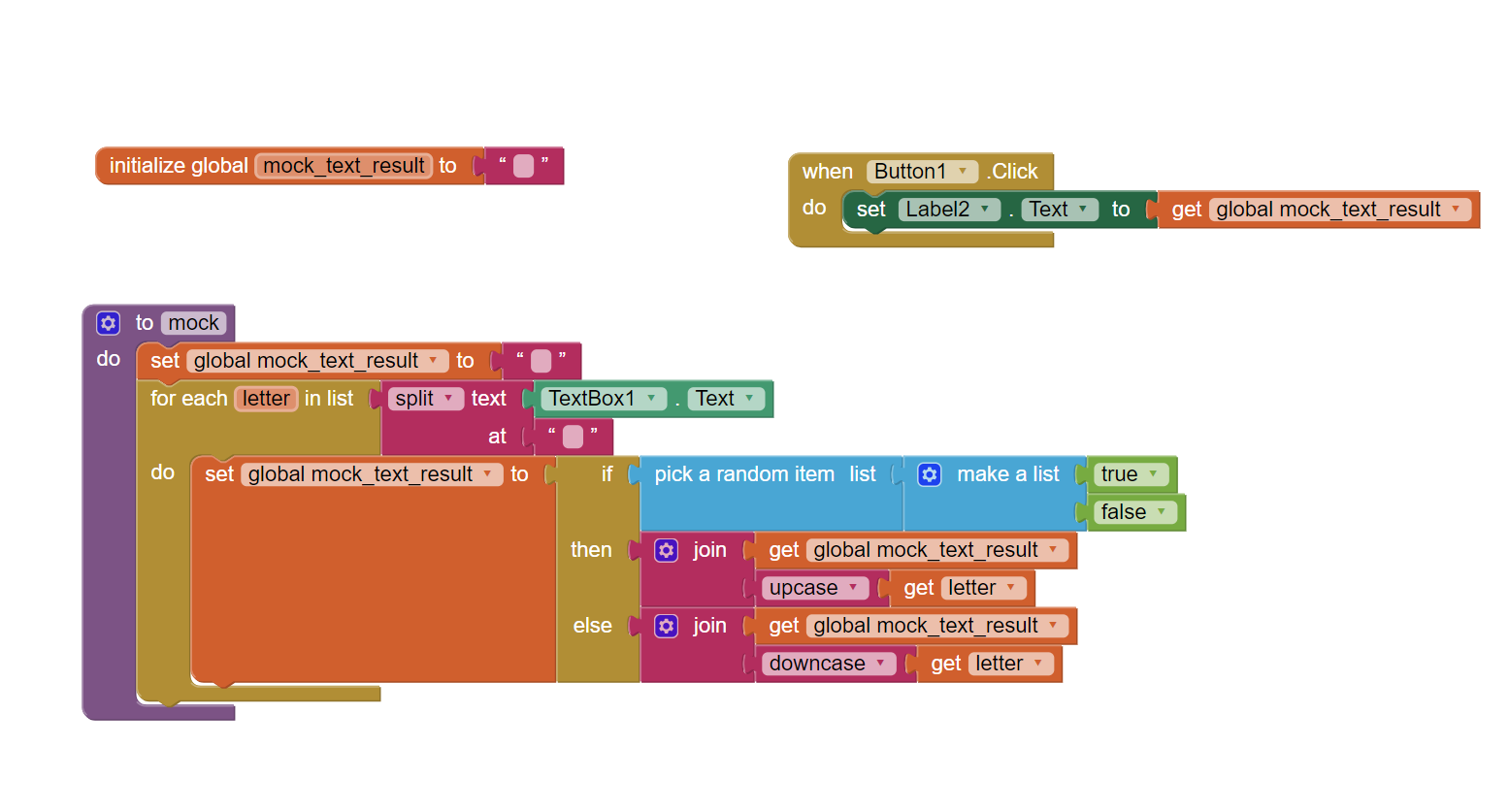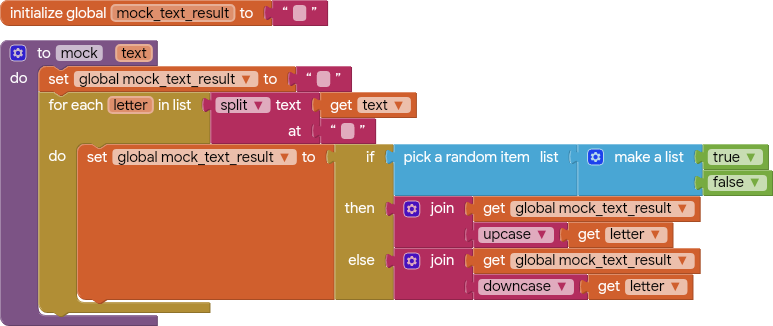 我认为这些区块是为了让每个单独的字母有50%的概率,并大写这封信50%的时间。但我不知道怎么做。