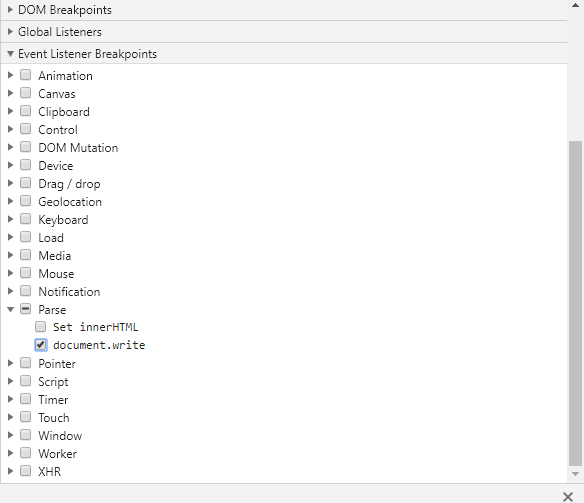 是否有一种方法可以在页面加载期间在document.write()上中断/触发调试器,而不知道它将发生在何处?