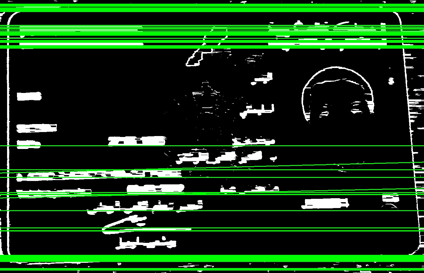 lines = cv2.HoughLinesP(edges,.7,np.pi/180, 100,minLineLength,maxLineGap)