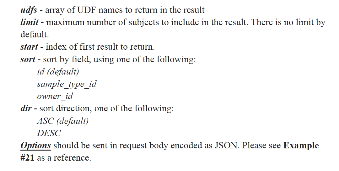 curl -g --insecure 'https://username:password@demo-usa.freezerpro.com/api?method=advanced_search&subject_type=Sample&query=[{type="udf",field="patient_id",value=111222333}]'我正在使用: