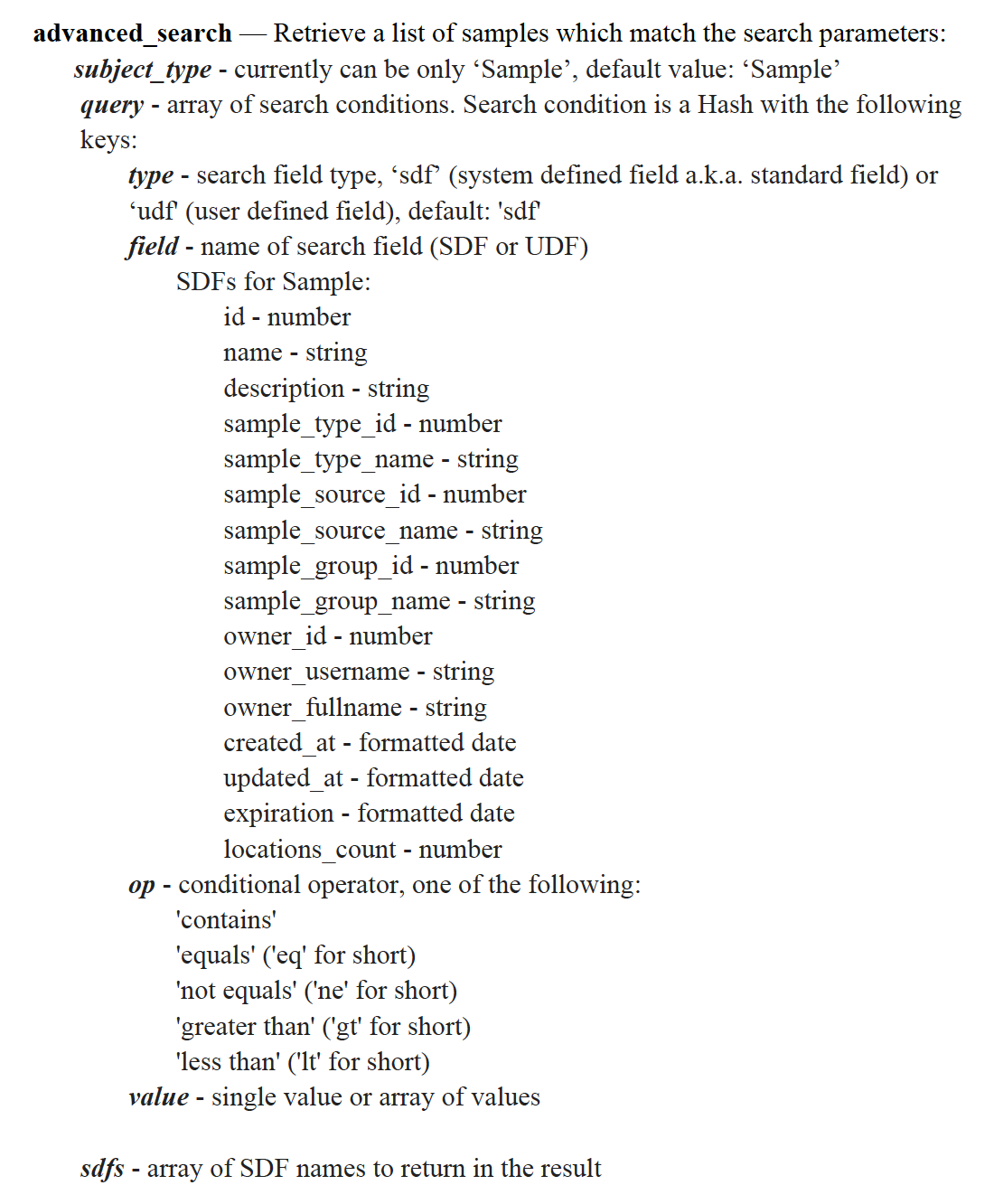 },然后有一个search_samples方法,它搜索给定query的样本中的任何字段。例如: