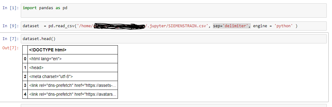 我已经建立了一个google云帐户,我想在jupyter笔记本上更快地完成我的深入学习,但是我找不到一种方法来读取我从github帐户下载的csv文件,然后我尝试了。