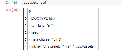 当我运行dataset.head()时,出现了这样的情况