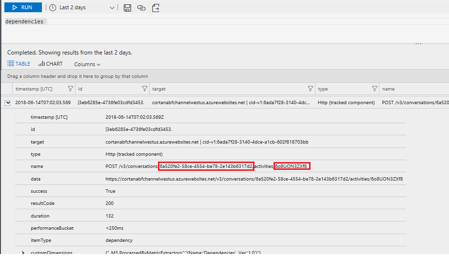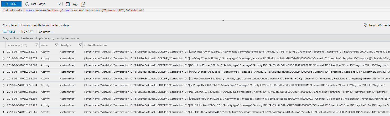 我注意到了一个奇怪的问题,当对话发生在Cortana频道时,这些消息没有登录到应用程序洞察力中。其他频道将被记录。