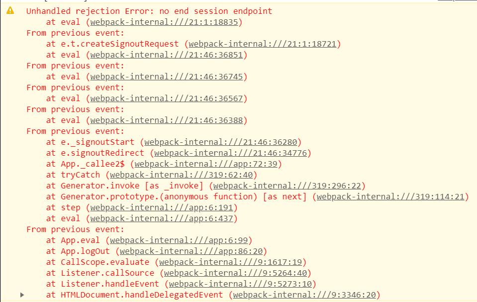 我已经成功地使用了布洛克艾伦的oidc-客户端js库来验证我的SPA应用程序,Auth0充当了我的身份提供者。但是,当我试图使用库将用户签出mgr.signoutRedirect({state: "my test"})时,我会收到一个错误:no end session endpoint。