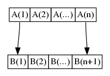 Array2 [ shape = record, label = "{ <b1>B(1) | <b2>B(2) | <b3>B(...) | <bn1>B(n+1)}"] ;