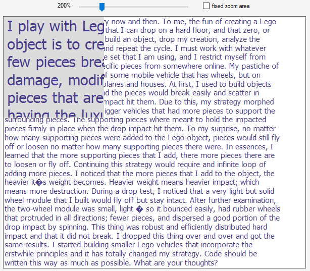float zoomFactor = 2f;只放大部分图形的诀窍是将图形显示两次,一次是正常的,一次是使用Graphics对象的转换。