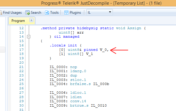 ilProcessor.Body.Variables.Add(new VariableDefinition(new PinnedType(module.ImportReference(typeof(byte[])))));请注意这一点: