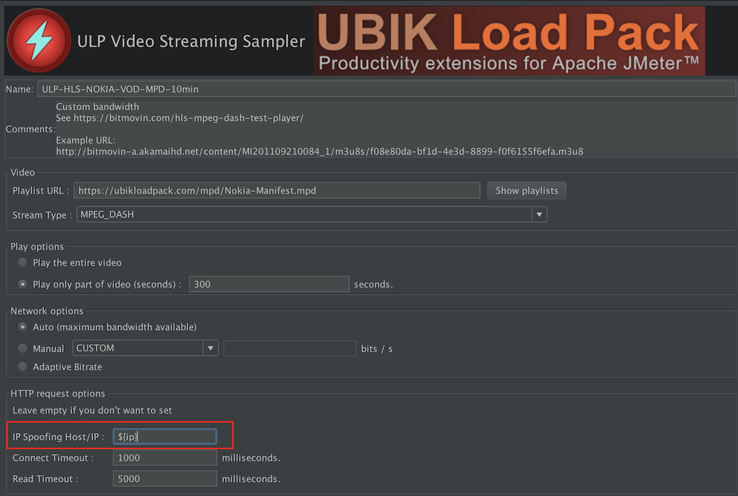我们使用UbikLoadPack加载在以下文件中传递的测试流:
