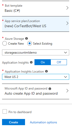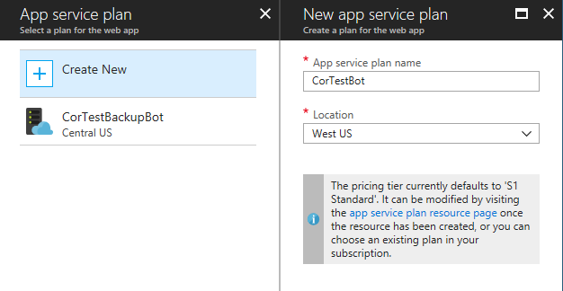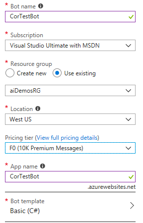 我一直在尝试测试网页应用程序机器人在Azure的创建,所以我一直在删除和重新创建一个特定的机器人。以下是设置