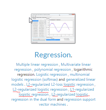 到目前为止,答案如下。巨蟒的Lasso (L1)和脊(L2)已经实现了线性回归。但Accord.net for L1和L2仅用于Logistic回归。从他们的网站截图中可以清楚地看到这一点: