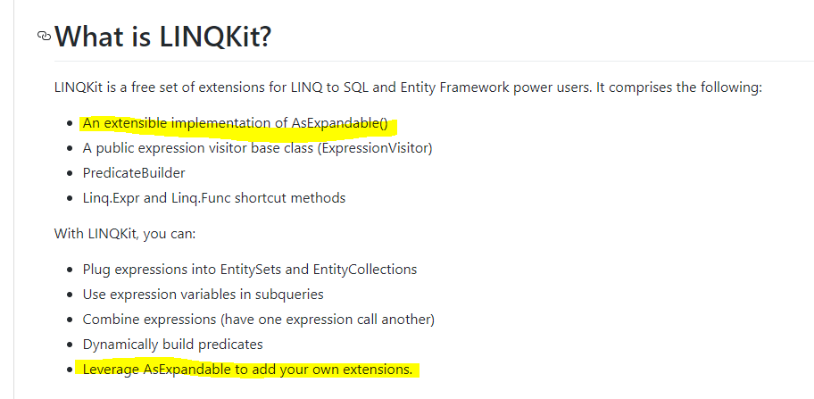我想利用LinqKit的AsExpandable特性来在linq查询中转换我的自定义方法。