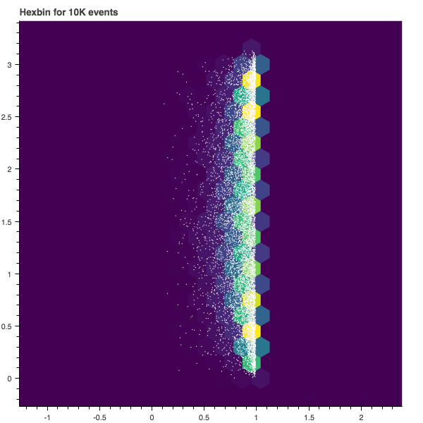 当然,我并不是说bokeh不能这么做,但它似乎不那么简单。这足以将六边图更改为正方形的平面图,但quad(left, right, top, bottom, **kwargs)似乎没有这样做,hexbin也没有改变“平铺”形状的选项。