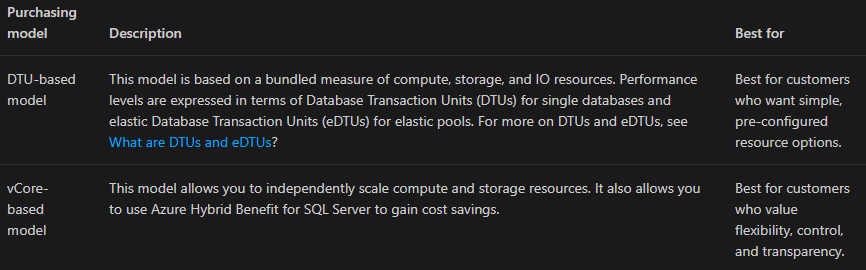 另一个解决办法是调查基于vCore的采购模式(预览)。