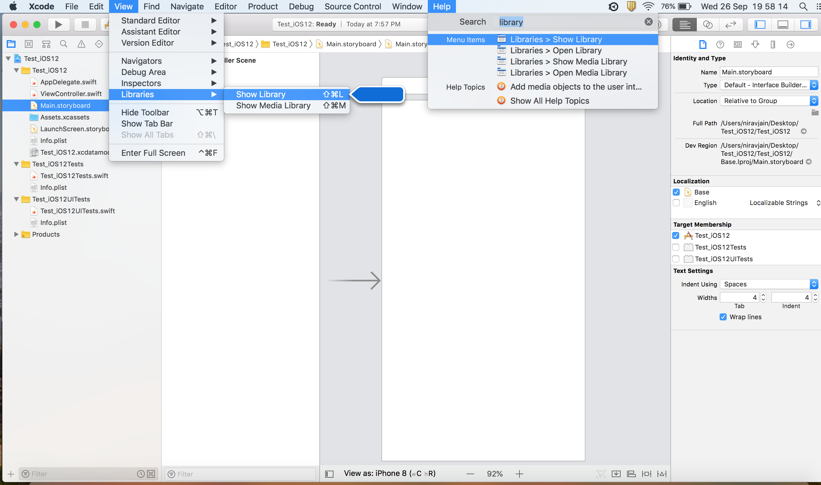 只要去(选择) .swift文件或viewcontrolelr.h文件或viewcontroller.m文件和火显示库快捷/打开库快捷方式,它将显示片段对话框。