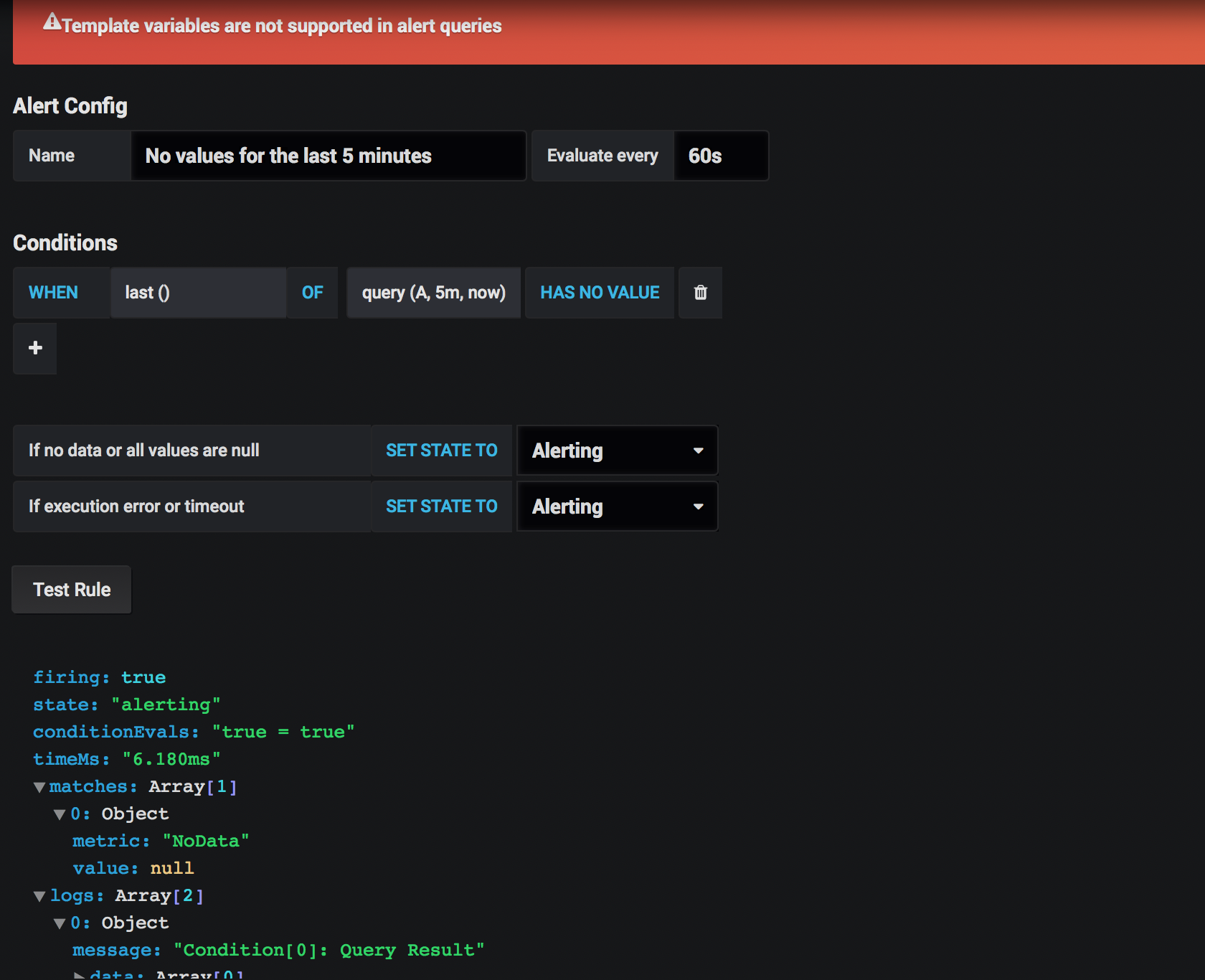 警报查询不支持模板变量。
