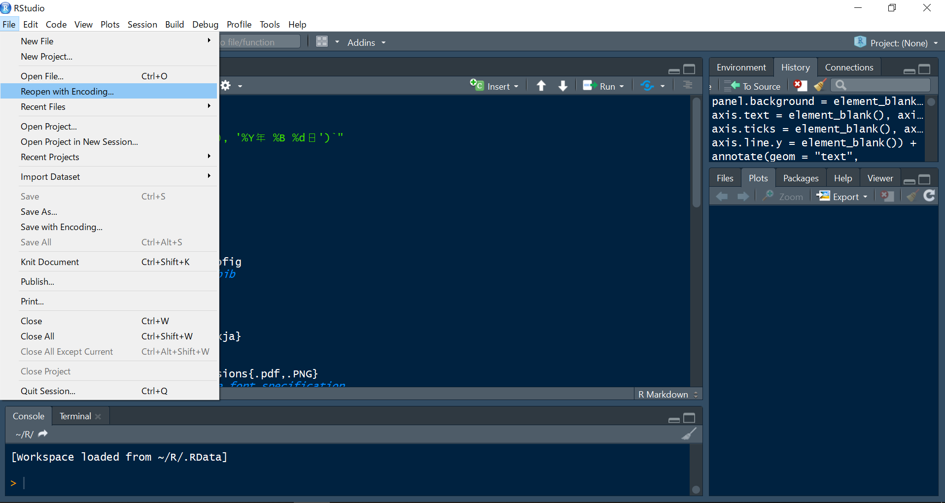 虽然我是Windows用户,但我有一种简单的方法可以让损坏的文件可读的:您可以用任何编码重新打开文件。首先,像往常一样打开文件。然后,如果您看到文件乱码,请单击File和Reopen with Encoding...按钮,如下图所示。