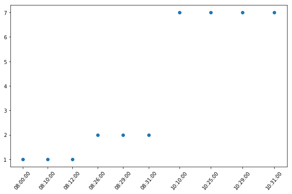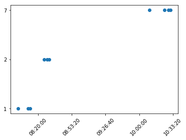 plt.locator_params(axis='x', nbins=10) 结果与上述相同。如果我把nbins改为更小的东西,滴答就不会重叠,但它们不会对齐它们各自的散点点。与散点点一样,不要用正确的时间戳对齐。