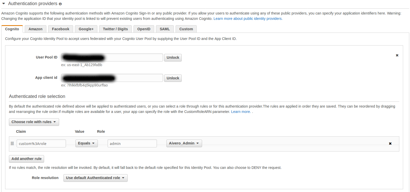 我终于找到了解决办法。如果有人遇到和我一样的问题,你可以去仪表板上找你的认知身份池,然后编辑它。