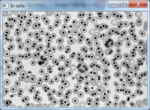 我正试着在显微镜图像上计算红细胞的数量。这些是较小的细胞。(我第一次尝试使用CNN和滑动窗口,但是太慢了,所以我想找一个更简单的分段)