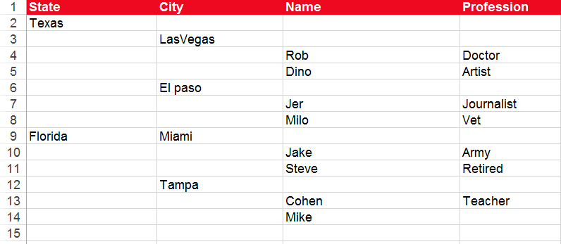 sheet.add_row ["State", "City", "Name", "Profession"], :style => style1