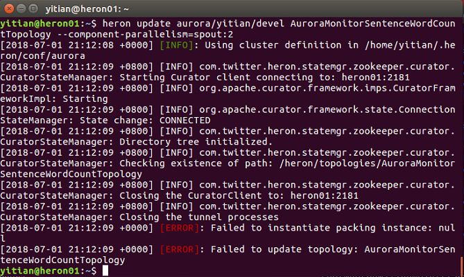 [2018-07-03 12:07:27 +0800] [FINE] com.twitter.heron.scheduler.RuntimeManagerMain: Exception when submitting topology