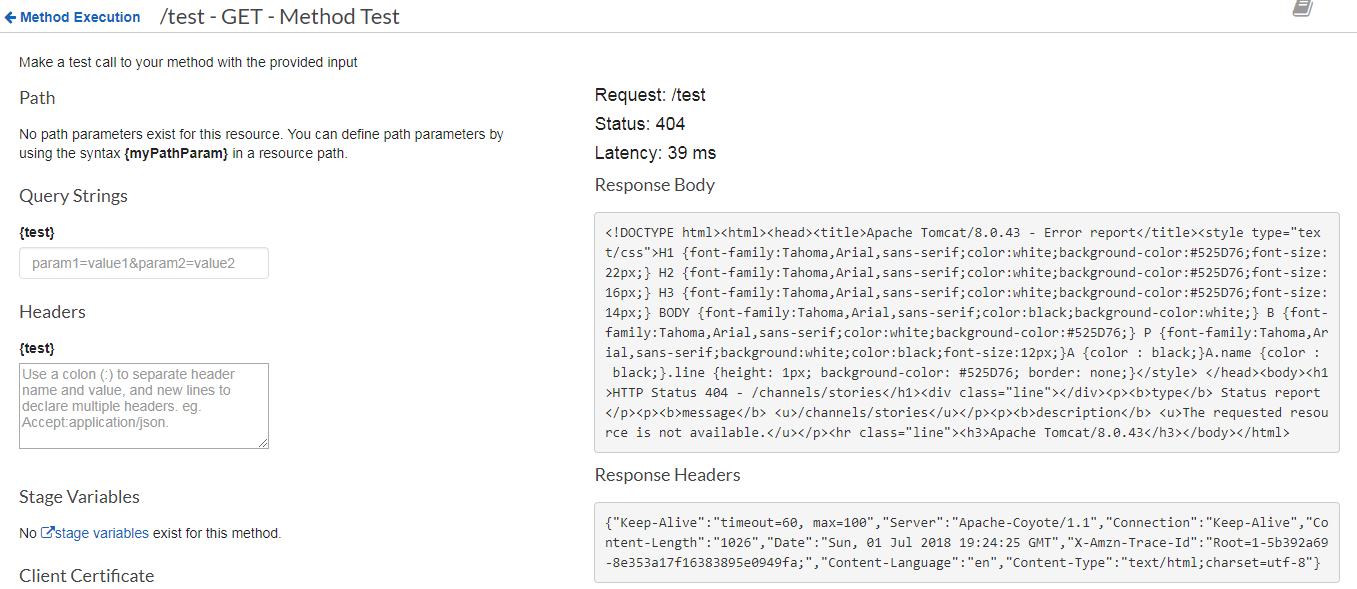 如Apache 404响应所示,请求实际上是向后端发出的。您需要确保Tomcat配置为服务于path API网关请求的路径。