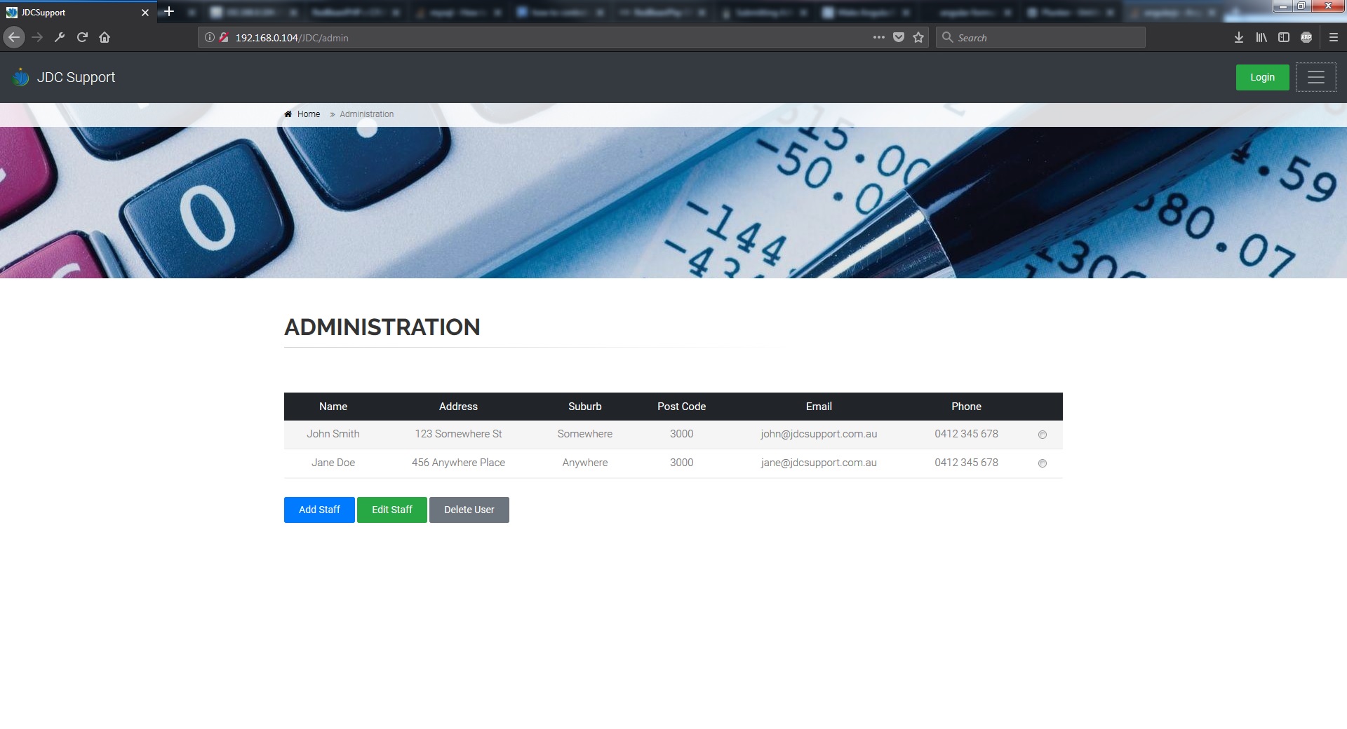 <button type="button" class="btn btn-primary" data-toggle="modal" data-target="#addModal">Add Staff</button>