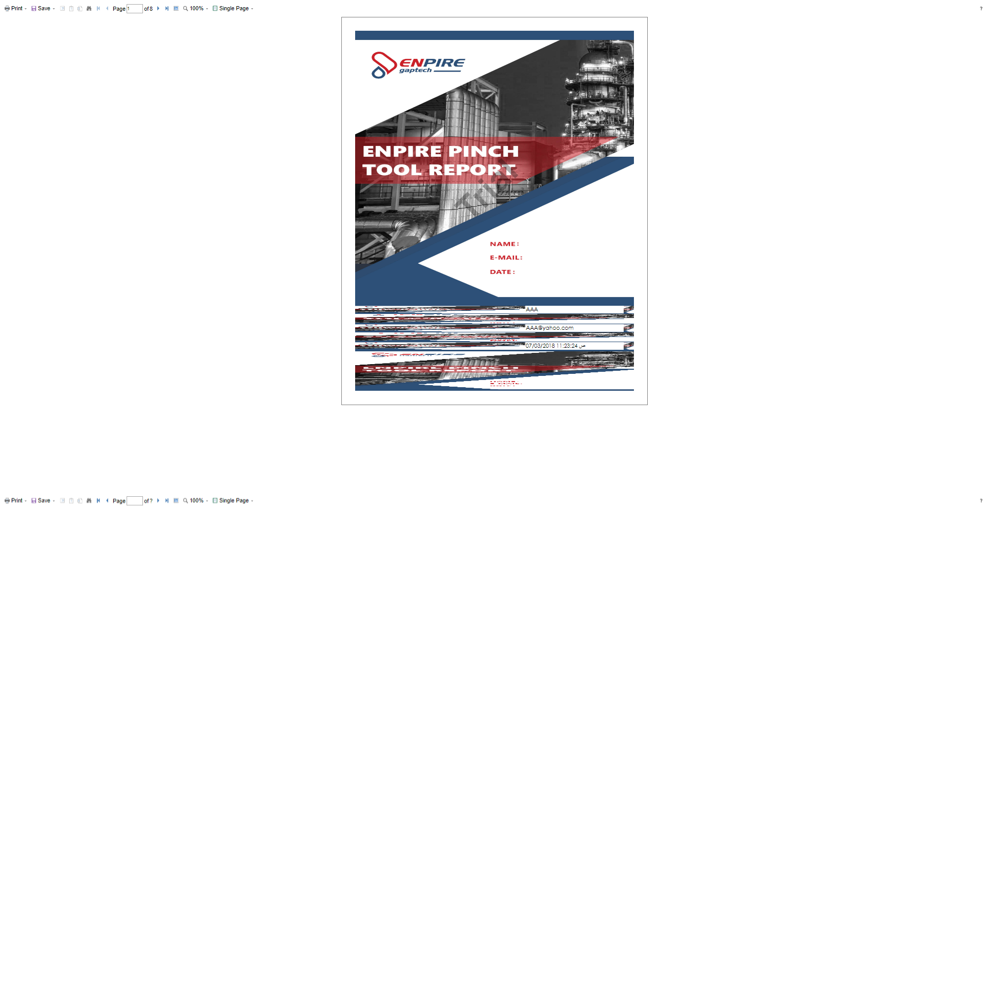}在此之后,报表查看器将在一个新的浏览器选项卡中打开,而不是在引导选项卡内,浏览器会像下图所示的那样崩溃,两个菜单出现在顶部和按钮上,当我以pdf格式导出报表时,所有的数据都正常,所有的数据都在它的位置,