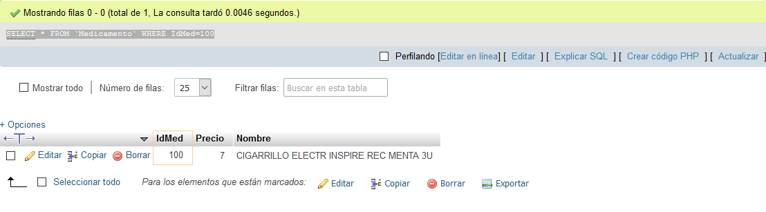 SELECT * FROM `Medicamento` WHERE IdMed=100