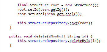 正如我们所看到的,save和deleteById方法都有标记,但是这些方法是从CrudRepository…继承的。