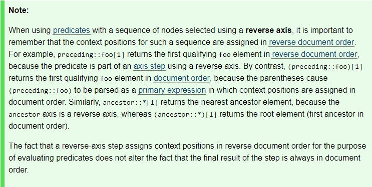 您需要了解context position和document order在XPath Axis中的清晰概念,如下所示: