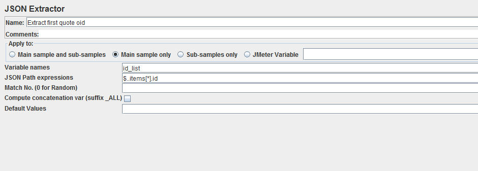 我添加了一个JSON提取器如下:
