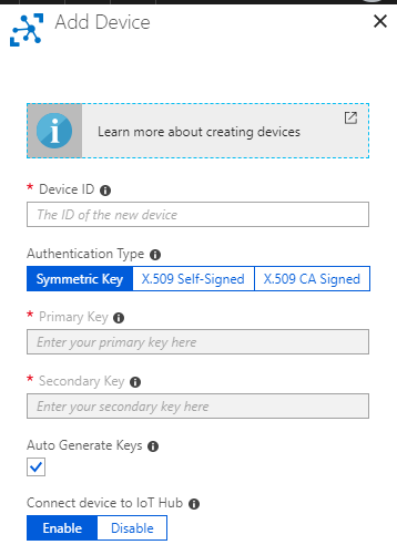 是的,您可以对经过对称密钥身份验证的设备使用SAS令牌。并支持使用x509证书进行x509自签名或x509 CA签名的认证设备.在注册设备时,您可以选择下列任何一种身份验证:
