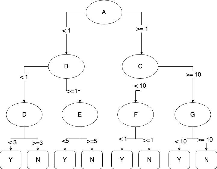 在表示中,有7个参数,作为树的结果,它给出了Y或N。