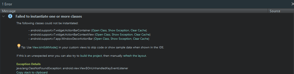 未能加载带有未知错误的AppCompat ActionBar。
