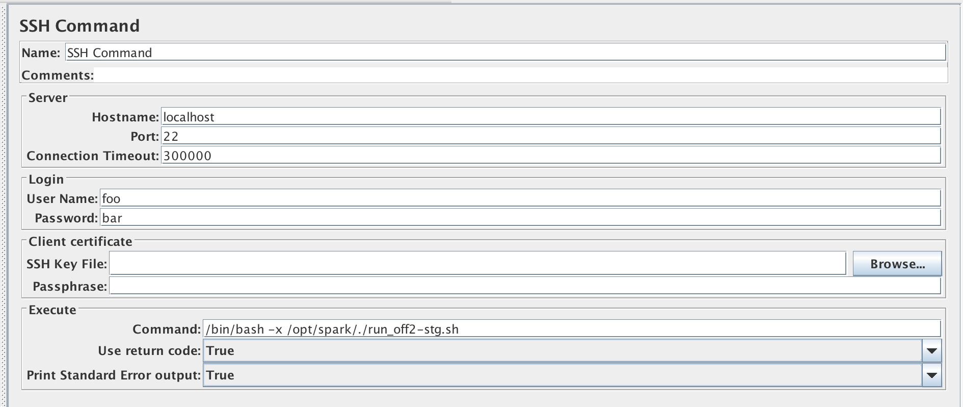 我有一个独特的问题,使用j抄SSH命令。我使用这个步骤来运行火花作业。问题是其中一个命令不起作用,为了澄清它的连接,没有得到响应,只是等待了几个小时,屏幕上什么也没有显示。