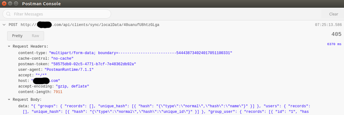 UPDATE设置content-type:"application/x-www-form-urlencoded"给出了本地主机和远程服务器上的错误(即没有传递输入值)。设置content-type:"multipart/form-data;可以在本地主机上正常工作,但在远程服务器上提供MethodNotAllowedHttpException。现在,在远程服务器上设置Route::any("clients...会导致上述相同的空错误。
