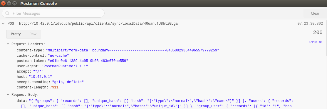 Route::post("/api/clients/sync/{command}/{uuid}", "SyncController@handle");并在/app/Http/中间件/VerifyCsrfToken.php中确保有以下代码
