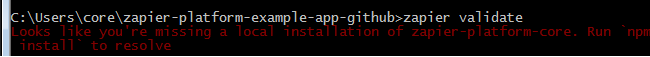 该错误来自这里,当我们在node_modules中找不到zapier-platform-core时会弹出。