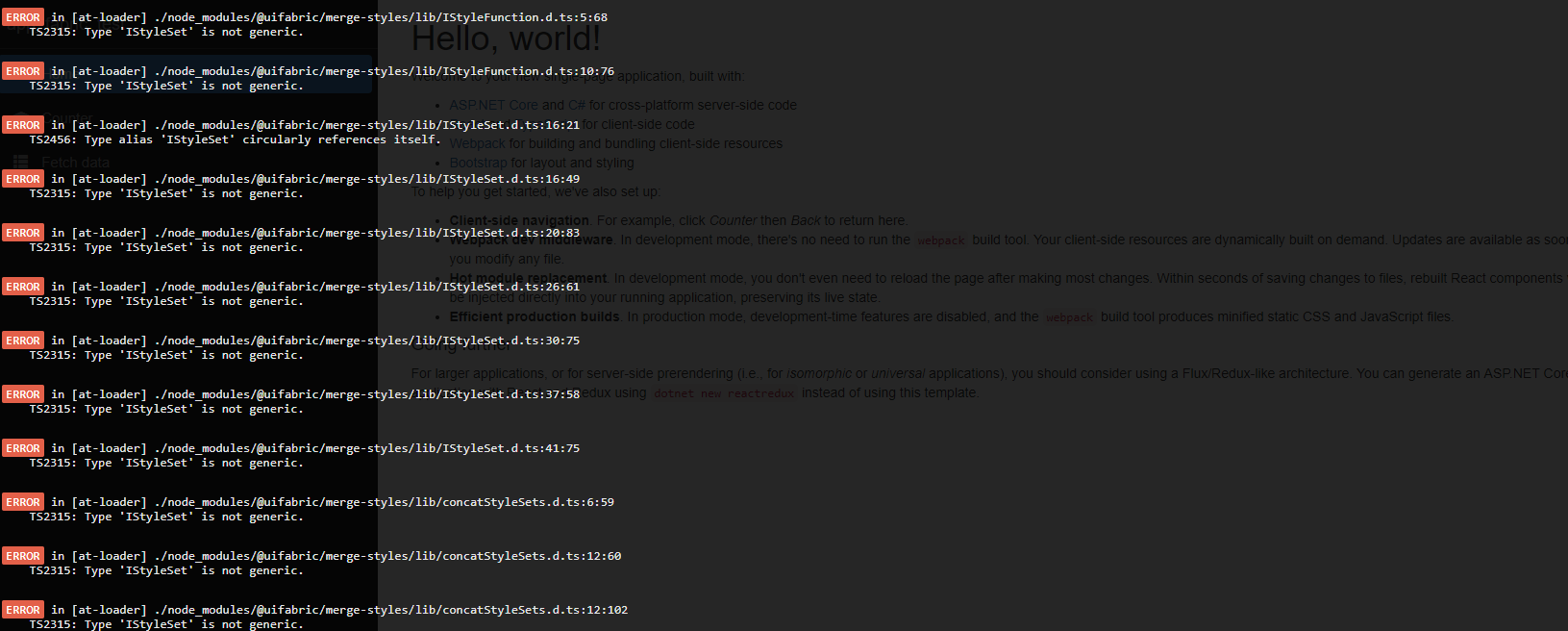 我有一个dotnet核心&& react应用程序,我想在其中使用Office fabric库。