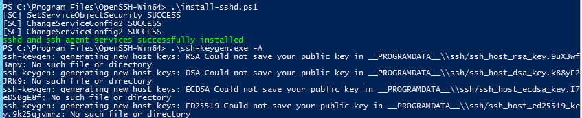 C:\Program \OpenSSH 64>powershell .\install-sshd.ps1 -A