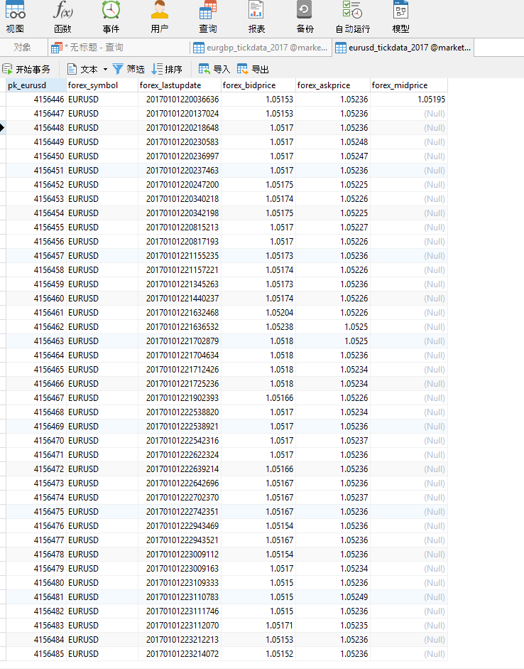表eurusd_tickdata_2017中大约有40,000,000行