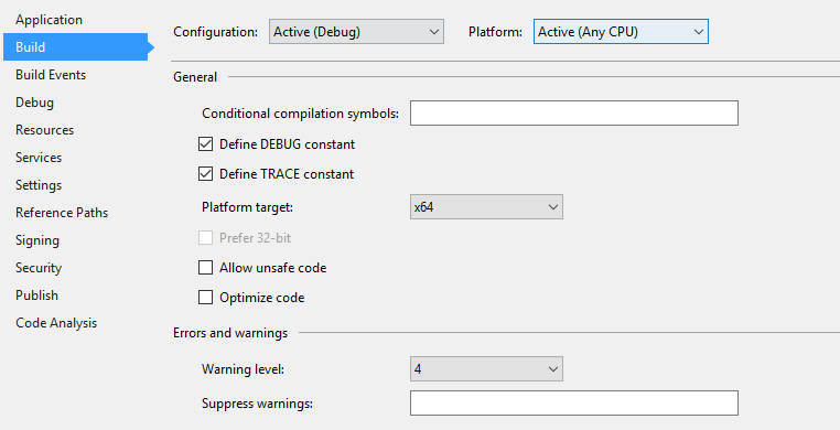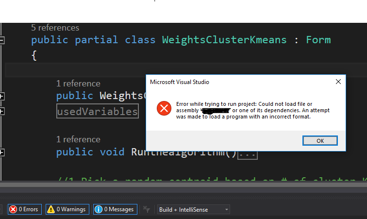 我使用的程序集是x64位,所以我将项目设置为x64位。