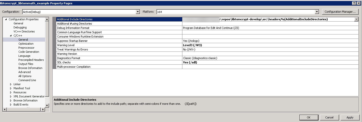 Error C1083 Cannot open include file: 'tomcrypt.h': No such file or directory我不知道还需要做些什么才能使引用正常工作,并编译代码。任何指点都是感激的!
