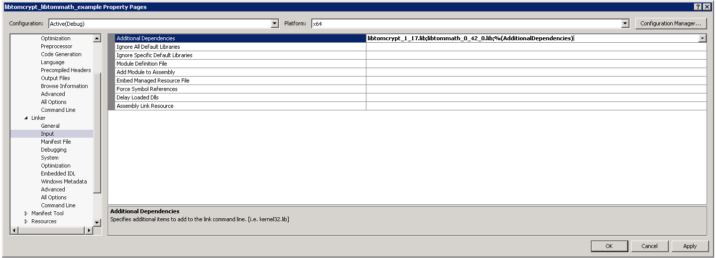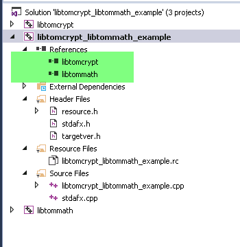 我是一个C#开发人员,当涉及到引用和依赖时,我被破坏了。我现在正在Visual C++ (Visuial Studio 2017)中做一个小项目,我想在那里使用libtommath库。我创建了一个小项目并将2项目添加到我的解决方案中: